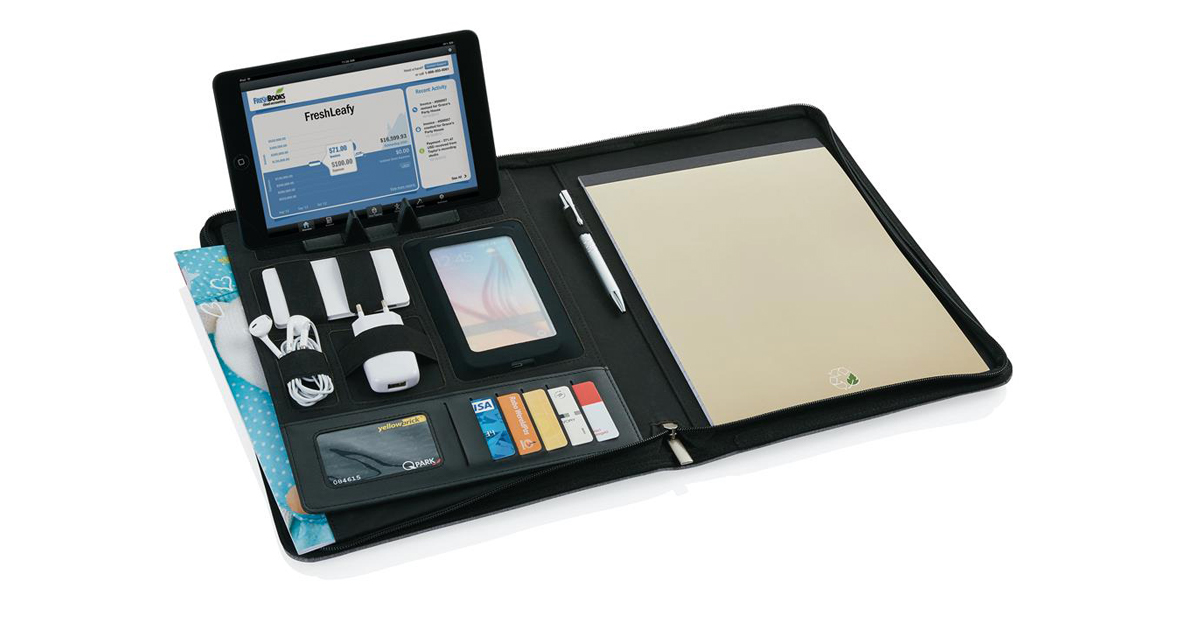 Kodas: p772.992_51A4 dydžio dokumentų bei mobiliųjų įrenginių dėklas.Komplekte 20 lapų užrašų knyga.Medžiaga: Poliuretanas bei poliesterisDydis: 34.0 x 26.5 x 2.5 cmLogotipavimas: šilkografijaMinimalus užsakomas kiekis: 25 vnt. Siųsti užklausą Produkto aprašymas << grįžti